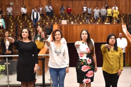 Xalapa, Ver., 18 de julio de 2019.- El Pleno de la LXV Legislatura del Estado aprobó el nombramiento y tomó la protesta de ley a las ciudadanas Katya Gabriela Esteva Cruz, Lorena Redondo Delgado, Myriam Lagunes Marín y Alma Delia Hernández Sánchez como integrantes del Sistema Estatal para Prevenir, Atender, Sancionar y Erradicar la Violencia contra las Mujeres.