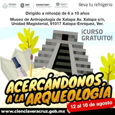Una opción para niñas y niños de seis a diez años es “Acercándonos a la arqueología” que se desarrollará en las instalaciones del Museo de Antropología del 12 al 16 de agosto. Mientras que para jóvenes de secundaria y preparatoria se oferta el curso: ¿Qué onda con las ondas? A realizarse del 14 al 16 de agosto en las oficinas del COVEICYDET.