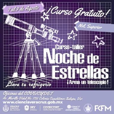 En tanto que, del 07 al 09 de agosto, jóvenes de educación superior podrán participar en la “Noche de estrellas” donde armarán un telescopio, teniendo como sede las oficinas del COVEICYDET, en la avenida Murillo Vidal # 1735 de la colonia Cuauhtémoc.