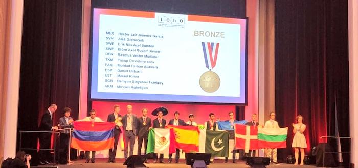Xalapa, Ver., 29 de julio de 2019.- El joven Héctor Jair Jiménez García del plantel 18 del Colegio de Bachilleres del Estado de Veracruz (COBAEV), con sede en Coatzacoalcos, obtuvo el tercer lugar en la 51.ª Olimpiada Internacional de Química en París, Francia.