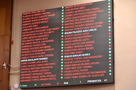 Este Dictamen, puesto a consideración del Pleno por la Comisión Permanente de Hacienda del Estado, durante la décima quinta sesión ordinaria, registró además 12 votos en contra y una abstención.