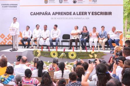 Papantla, Ver., 06 de agosto de 2019.- La política de la actual administración es atender a los sectores históricamente olvidados, por lo que el gobernador Cuitláhuac García Jiménez se ha comprometido a abatir el analfabetismo en la entidad, que afecta a 562 mil 781 personas mayores de 15 años.