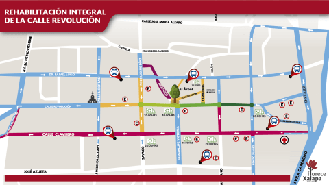 Para garantizar la fluidez vehicular, durante el desarrollo de cada etapa de la obra, personal de la Dirección de Seguridad Ciudadana y Tránsito Municipal, en coordinación con la Dirección General de Tránsito y Seguridad Vial del Estado, establecerá operativos en los cruceros de la calle Francisco Javier Clavijero con Isauro Acosta, Benito Juárez, y Juan de la Luz Enríquez, así como en la esquina de Juan de la Luz Enríquez y Doctor Rafael Lucio.
