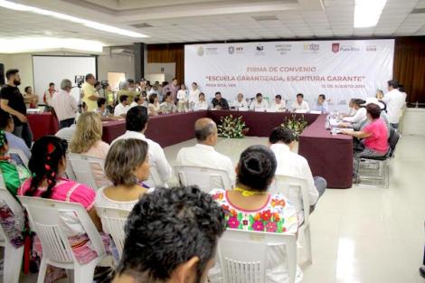 Tuxpan, Ver., 15 de agosto de 2019.- Con la suma de 30 municipios del norte del estado, son más de 100 los que han firmado convenios de colaboración con la Secretaría de Educación de Veracruz (SEV) para acreditar la propiedad y dar certeza jurídica a planteles escolares mediante el programa “Escuela Garantizada, Escritura Garante”.