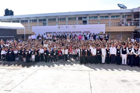 Tras destacar las buenas condiciones en que se encuentra esta primaria, a cargo de la directora Ciria Meza Rivera, explicó que en 2019 se han construido 434 aulas con recursos recuperados de 2018 y que la tarea es concluir 534 más, para cerrar el año con 960.