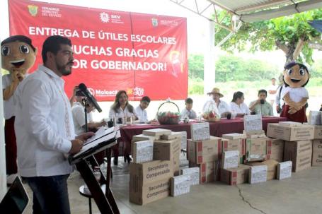 Acompañado por el coordinador de Delegaciones Regionales, Adrián Mota Montoya, otorgó 41 paquetes de útiles en la telesecundaria de la congregación El Chichón, municipio de Las Choapas; 115 en la “Josefa Ortiz de Domínguez”, comunidad Tlacuilolapan, en Moloacán; y 314 en el plantel de Las Barrillas, Coatzacoalcos.