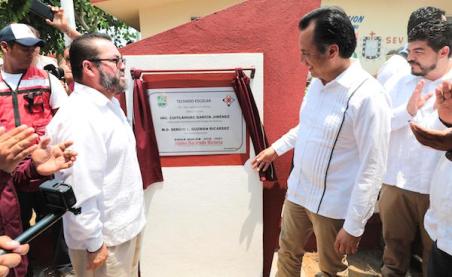 Asimismo, inauguró el domo de la cancha de usos múltiples de la Escuela Primaria “Adolfo López Mateos”, acompañado por el secretario de Educación de Veracruz, Zenyazen Escobar García, y el alcalde Sergio Guzmán Ricárdez, quien agradeció la inversión de un millón 273 mil 964 pesos para su municipio.