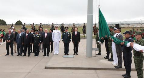 Asimismo, se efectuó una Salva de Honor por una sección de fusileros de la 26ª Zona Militar; el Toque de Silencio, los Honores al Lábaro Patrio y la interpretación de los himnos Nacional y del Heroico Colegio Militar.