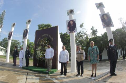 El titular de la dependencia, Zenyazen Escobar García, acompañado del comandante de la 29 zona militar, Alejandro Silva Hernández, montó guardia y colocó una ofrenda floral en el hemiciclo a los Niños Héroes.