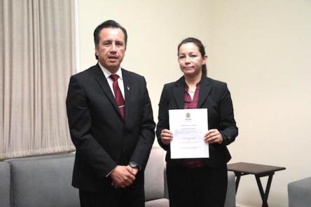 Xalapa, Ver., 14 de septiembre de 2019.- El gobernador Cuitláhuac García Jiménez tomó protesta de ley como titular de la Contraloría General del Estado (CGE) a Mercedes Santoyo Domínguez, quien dará continuidad al trabajo que venía realizando la licenciada Leslie Mónica Garibo Puga.