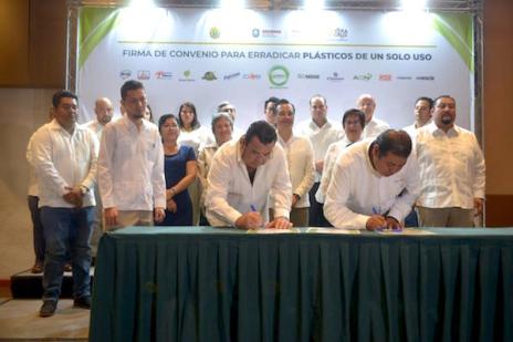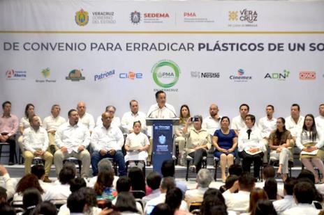 Boca del Río, Ver., 17 de septiembre de 2019.- Con la firma de un convenio para eliminar los artículos plásticos que se utilizan una sola vez, el Gobierno de Veracruz y empresas estatales y nacionales luchan contra los residuos que terminan en basureros a cielo abierto, generando contaminación del suelo, agua y aire.