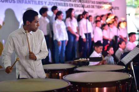 Coatepec, Ver., 19 de septiembre de 2019.- La Secretaría de Educación de Veracruz (SEV) promoverá la integración de orquestas y coros infantiles y juveniles en las escuelas de tiempo completo, a través del proyecto “Desarrollo de Habilidades Musicales”.