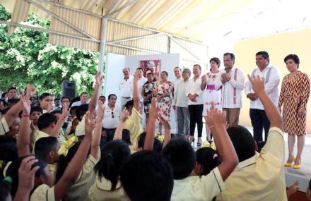 Al expresar que hay más de 400 obras por inaugurar en la entidad y 24 mil solicitudes en materia educativa, empeñó su palabra de atender y solucionar las peticiones, de acuerdo con los presupuestos y el trabajo coordinado con todos los niveles de gobierno.