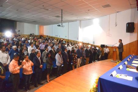 En su mensaje, el Mandatario estatal invitó a los maestros a revalorizar y cambiar sus metodologías; exhortándolos a aprovechar este espacio para reforzar sus conocimientos y trasmitirlos a los estudiantes en las aulas y superar el rezago educativo en el rubro.