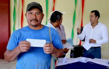 Xalapa, Ver., 26 septiembre de 2019.- La Secretaría de Desarrollo Agropecuario, Rural y Pesca (SEDARPA) entregó 906 mil pesos del Seguro Agrícola Catastrófico a 509 productores de maíz, por afectaciones en 604 hectáreas debido a la sequía en los municipios de Santiago Sochiapan y Juan Rodríguez Clara.