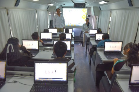 Mediante este esquema diversas brigadas acuden a las comunidades a bordo de vehículos equipados con herramientas informáticas (aulas móviles interactivas) para capacitar a la población.