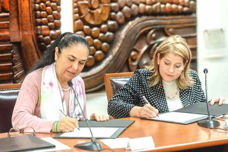 Al signar el documento, Sara Ladrón de Guevara, rectora de la UV, señaló que este convenio nutre el objetivo de internacionalización de la máxima casa de estudios, establecido en el Programa de Trabajo Estratégico 2017-2021 “Pertenencia y pertinencia”.