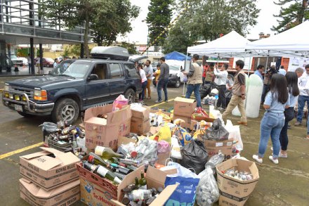 De 09:00 a 14:00 horas se acopió más de 30 toneladas de residuos reciclables y de manejo especial como papel, cartón, Tetra Pak, vidrio, electrónicos, medicamentos caducos, pilas y aceite de cocina quemado, así como alrededor de mil llantas.
