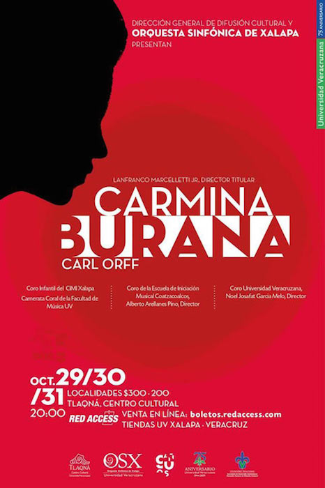 Xalapa, Ver., 13 de octubre de 2019.- La Orquesta Sinfónica de Xalapa (OSX) de la Universidad Veracruzana (UV) anuncia la presentación de la cantata escénica Carmina Burana, obra monumental de Carl Orff, los días 29, 30 y 31 de octubre.