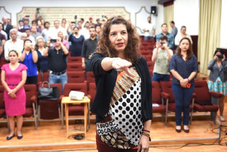 Xalapa, Ver., 15 de octubre de 2019.- La licencia para la separación del cargo de Clementina Guerrero García como tesorera municipal y la designación y toma de protesta de Dolores Emelia Valenzuela Ponce para asumir esta responsabilidad de forma temporal, aprobaron por unanimidad de votos los integrantes del Cabildo, en Sesión Ordinaria celebrada este martes.
