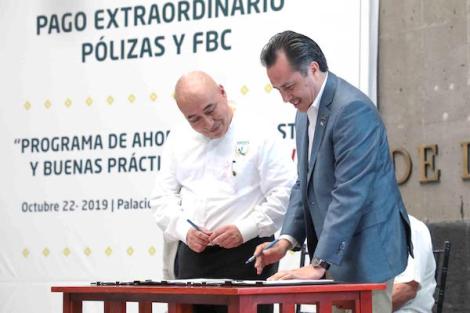 Xalapa, Ver., 23 de octubre de 2019.- Con el pago extraordinario de 27 millones de pesos de Pólizas y Fondo de Beneficios Complementarios a pensionados, para 985 beneficiarios del Seguro Social de los Trabajadores de la Educación de Veracruz (SSTEEV), el Gobierno del Estado da cumplimiento al compromiso de las acciones contundentes en materia de austeridad y honradez por la seguridad del magisterio.