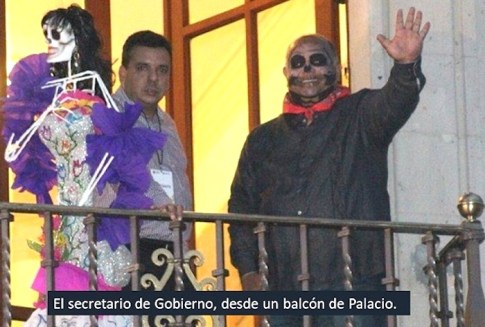 Ver al secretario de Gobierno disfrazado en la víspera del Día de Muertos lo mismo en la calle que saludando desde uno de los balcones del Palacio de Gobierno (no se distingue si desde su oficina o la del gobernador) pero también al mismísimo titular del Ejecutivo dejándose pintar media cara de “muerto” o “calavera” (en un video se le ve bailando, danzando) me frenó en el tema que abordaba y me llevó a redactar estas líneas.