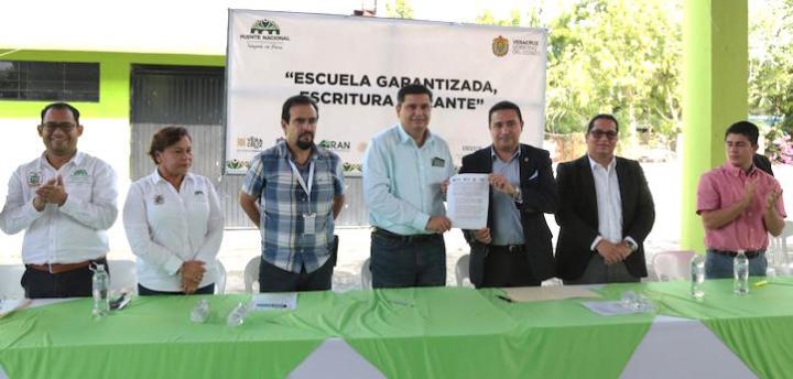 Puente Nacional, Ver., 05 de noviembre de 2019.- Este día, el Ayuntamiento de Puente Nacional se adhirió al programa “Escuela Garantizada, Escritura Garante” de la Secretaría de Educación de Veracruz (SEV), sumando con éste poco más del 80 por ciento de los municipios de la entidad incorporados.