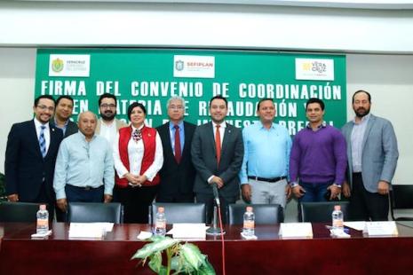 Xalapa, Ver., 15 de noviembre de 2019.- La Secretaría de Finanzas y Planeación (SEFIPLAN), junto con la Secretaría de Gobierno (SEGOB) y ocho municipios veracruzanos, signaron el “Convenio de coordinación y colaboración administrativa en materia de recaudación y fiscalización del impuesto predial y sus accesorios legales”, con la finalidad de fortalecer el erario municipal.