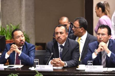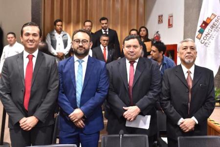 Los diputados integrantes de la Comisión Permanente de Comunicaciones, Antonio García Reyes, presidente, Gonzalo Guízar Valladares, secretario, y Omar Guillermo Miranda Romero, vocal, conocieron de voz del funcionario datos precisos sobre el estado que guarda la administración estatal en este rubro.