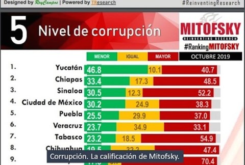 Este último indicador muestra que la población no coincide con la afirmación oficial de que ya se acabó la corrupción, como se festinó en el Primer Informe. La gran mayoría afirma que la situación está igual o peor, es decir, que la corrupción está vivita y coleando.