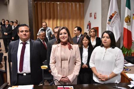 En nombre del Congreso local, las diputadas Adriana Esther Martínez Sánchez y Erika Ayala Ríos, presidenta y secretaria de la Comisión de Trabajo y Previsión Social del Congreso del Estado respectivamente, recibieron la exposición de la funcionaria estatal, en la séptima de las comparecencias celebradas en el auditorio Sebastián Lerdo de Tejada del Palacio Legislativo, correspondientes a la Glosa del Primer Informe de Gobierno del ingeniero Cuitláhuac García Jiménez.