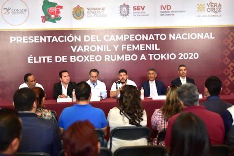 Xalapa, Ver., 06 de diciembre 2019.- La Secretaria de Educación de Veracruz (SEV), en coordinación con la Comisión Nacional del Deporte (CONADE), presentaron el próximo Campeonato Nacional Varonil y Femenil Élite de Boxeo, rumbo a Tokio 2020, del 17 al 22 de febrero, en Boca del Río; con la participación de boxeadores profesionales.