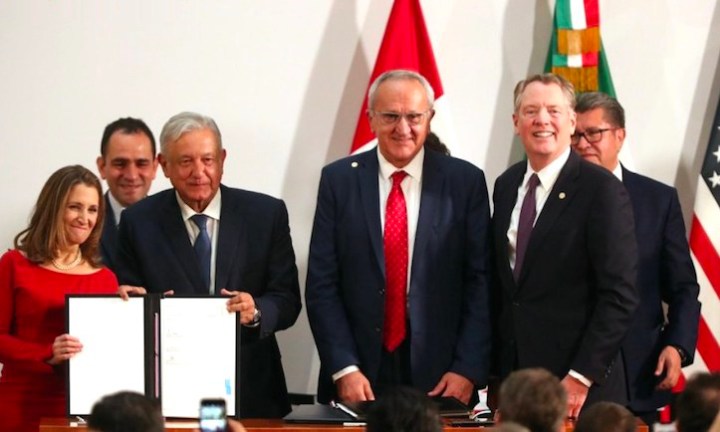 El presidente Andrés Manuel López Obrador afirmó que el acuerdo comercial fortalecerá a las tres naciones y será de beneficio para sus pueblos, tras firmar como testigo de honor el protocolo modificatorio del Tratado entre México, Estados Unidos y Canadá.