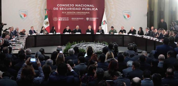 Ciudad de México, 18 de diciembre de 2019.- Durante la XLV Sesión Ordinaria del Consejo Nacional de Seguridad Pública, encabezada por el presidente Andrés Manuel López Obrador, fue aprobada la creación de la Comisión de Prevención del Delito y Participación Ciudadana, que presidirá el gobernador Cuitláhuac García Jiménez.
