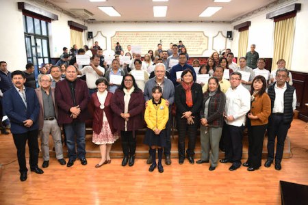 Xalapa, Ver., 28 de diciembre de 2019.- Por llevar a 234 escuelas primarias estatales, federales y privadas de la ciudad más de 27 mil 700 ejemplares de la antología poética Tren Musical de Palabras, el Ayuntamiento de Xalapa entregó reconocimientos a 30 promotores culturales de la Regiduría Sexta, las direcciones de Seguridad Ciudadana y Tránsito Municipal, Participación Ciudadana y Desarrollo Social, así como de la Unidad de Ediciones, Publicaciones y Registro.