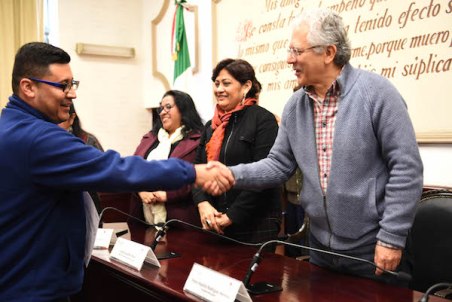 Los directores de Participación Ciudadana, Francisco Domínguez Canseco y de Desarrollo Social, Sergio Téllez Galván, así como la jefa de la Unidad de Ediciones, Publicaciones y Registro, María Victoria Hernández Rodríguez.