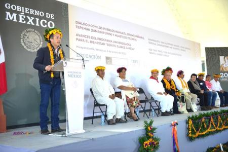 En el marco del Diálogo con los Pueblos Nahua, Otomí (Hñähñu), Tepehua (Jamasapijnin) y Huasteco (Teenek) del Estado de Veracruz, el Presidente de la República destacó que pronto regresará a esta zona para supervisar el avance con los programas sociales, además de que se creará una sucursal del Banco del Bienestar.