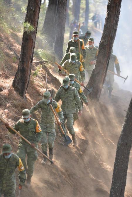 Participan 72 elementos de la CONAFOR, CONANP, PC estatal, voluntarios y brigadistas comunitarios de los ejidos Los Pescados, Tenextepec y Tembladeras. En el transcurso del día arribarán elementos de la SEDEMA, SEDENA y PC municipal.