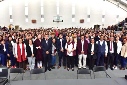 Al evento asistieron el subsecretario de Desarrollo Educativo, Moisés Pérez Domínguez; la directora de Recursos Humanos, Lilian Cuevas Franco; la encargada de la delegación federal de la Secretaría de Educación Pública (SEP), Emma Pérez Prado y la notario público número 33, Hortensia Alarcón Montero.
