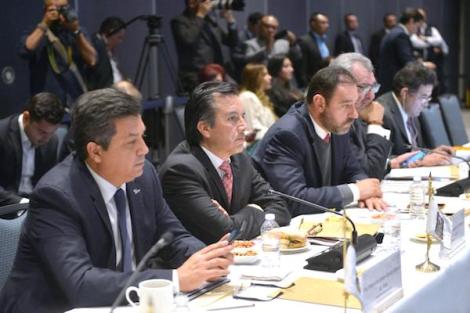 Ciudad de México, 14 de enero de 2020.- En la reunión con integrantes de la CONAGO y el Gabinete de Seguridad del Gobierno federal, encabezado por el secretario de Seguridad Pública y Participación Ciudadana, Alfonso Durazo Montaño, el gobernador Cuitláhuac García Jiménez suscribió el acuerdo con el que mandatarios y Federación constituirán un frente que combata la inseguridad.