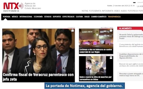 Lo que me llamó poderosamente la atención fue que la agencia noticiosa oficial, Notimex, ahora de Morena, controlada totalmente por el gobierno de Andrés Manuel López Obrador, tuvo gran parte del martes hasta la media noche la nota en forma destacada en su portal con el encabezado: Confirma fiscal de Veracruz parentesco con jefa zeta (foto).