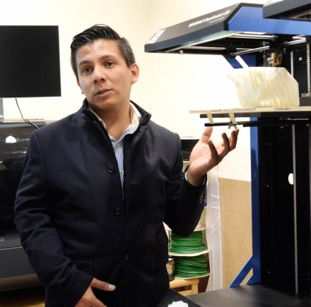 Ciudad de México, 26 de enero de 2020.- Una impresora que reproduce estructuras porosas muy pequeñas con alta resolución, semejantes a los huesos, con materiales biodegradables, fue diseñada por Aarón Misael Ortiz de la O, alumno del Posgrado en Diseño Industrial, de la UNAM.