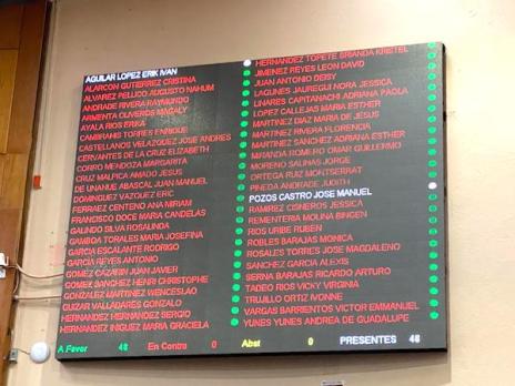 Con 48 votos a favor fue aprobado este dictamen, resultado de la iniciativa presentada el pasado 23 de enero por el diputado Rubén Ríos Uribe, del Grupo Legislativo Morena y a la cual se adhirieron los Grupos Legislativos de Morena, del Partido Acción Nacional, Mixtos Del Lado Correcto de la Historia y Partido Revolucionario Institucional-Partido Verde Ecologista de México.