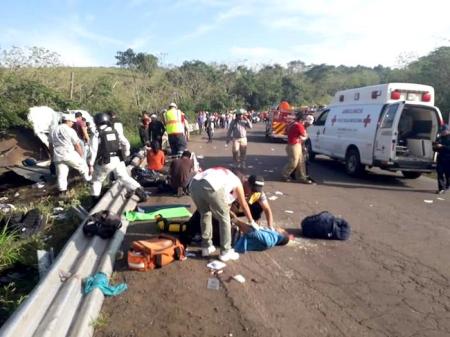 San Andrés Tuxtla, Ver., 04 de febrero de 2020.- El Gobierno del Estado ha brindado todo el apoyo a decenas de migrantes que resultaron heridos tras volcar el camión torton con caja seca en que viajaban, sobre la Carretera Federal 180.