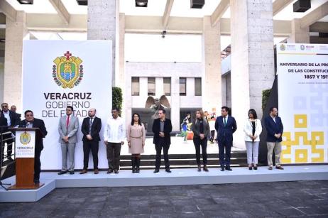 Xalapa, Ver., 5 de febrero de 2020.- La LXV Legislatura y el Gobierno del Estado de Veracruz llevaron a cabo, este 5 de febrero, en la explanada del Palacio Legislativo, el acto cívico para conmemorar el aniversario de la promulgación de las Constituciones de 1857 y 1917.