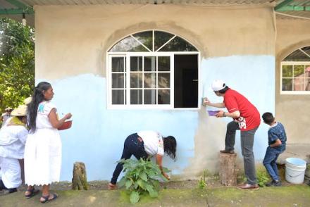 De manera paralela hay algún servicio comunitario, por ejemplo, se pintaron las fachadas de 180 viviendas de El Tajín, como una forma de rescatar la cultura de participación que se privilegia en los pueblos originarios.