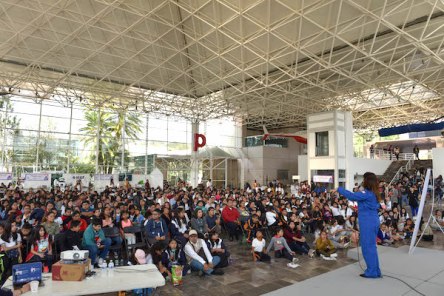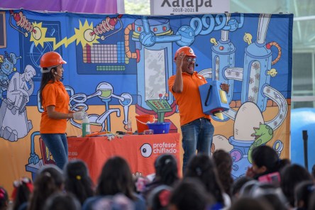 Xalapa, Ver., 11 de febrero de 2020.- Para demostrar que la ciencia es divertida y útil para la vida cotidiana, enfrentar nuevos paradigmas, contribuir a abatir el rezago educativo y promover la igualdad de género, este martes se presentaron en la feria Chicas en la Ciencia el espectáculo de teatro interactivo Profesor Chiflado y la conferencia de la ingeniera física Carolina Gallardo, Alcanzando tu estrella.