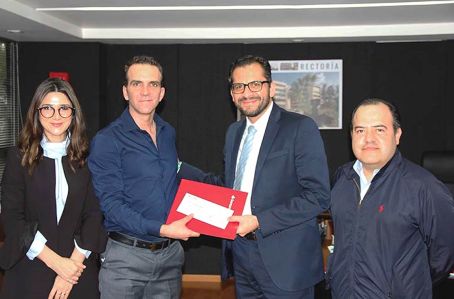 El cheque fue recibido en la Secretaría de Administración y Finanzas (SAF) por su titular, Salvador Tapia Spinoso, y Daniel Romero León, coordinador del Programa de Movilidad de la UV (Promuv).