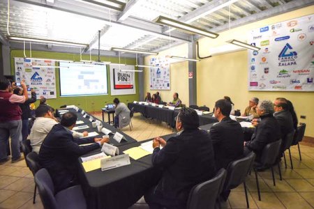 La jefa del Departamento de Regulación Sanitaria, Ruth Galván Ruiz; la jefa del Departamento de Recaudación, Sandra Romero Olvera, así como presidentes y representantes de la Cámara Nacional de Comercio, Servicios y Turismo de Xalapa (Canaco-Servytur), el Consejo Coordinador Empresarial de Xalapa (CCE) y la Confederación Patronal de la República Mexicana Xalapa (Coparmex).
