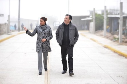 Primero, recorrió las calles General Anaya y 16 de Septiembre en la cabecera municipal de Villa Aldama; ahí la Secretaría de Infraestructura y Obras Públicas (SIOP) construyó pavimento hidráulico, guarniciones y banquetas, además de instalar 22 luminarias.
